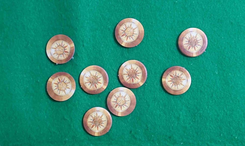 コインチップです、36枚あります。カードを競りにかけるときに使用します。