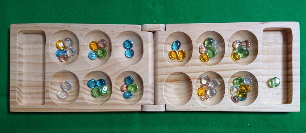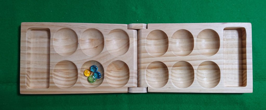 繰り返しやらないとなかなか勝ち方が分かりませんが、綺麗な石をつまんで種まきするのが楽しいボードゲームです。長い歴史をもつゲームであるのも納得ですね!