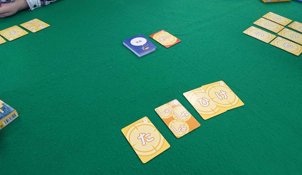お題カードとひらがなのカードを見て言葉を発するカードゲーム。例えばお題が「歴史上の人物」ひらがなが「う」だったら上杉謙信とか。早く言えた人がそのカードを獲得します。