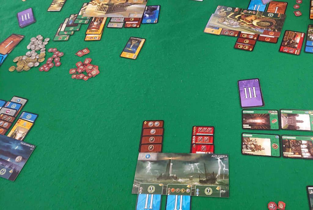 今回私は、軍事力と文明の進化の方に重点をおいてカードを集めました。毎ラウンドの起こる戦争には勝ち続けることが出来ましたが、資源が偏ってしまったことが原因で後半良い建物が建てられなくなってしまいました。ちょっと失敗ですかね?!