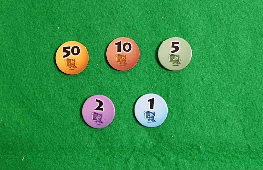 得点チップです。最初に75点分各プレイヤーに配ります。失点するごとにチップを支払っていきます。