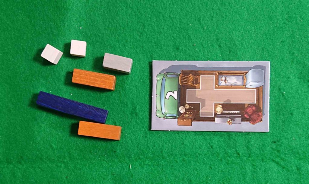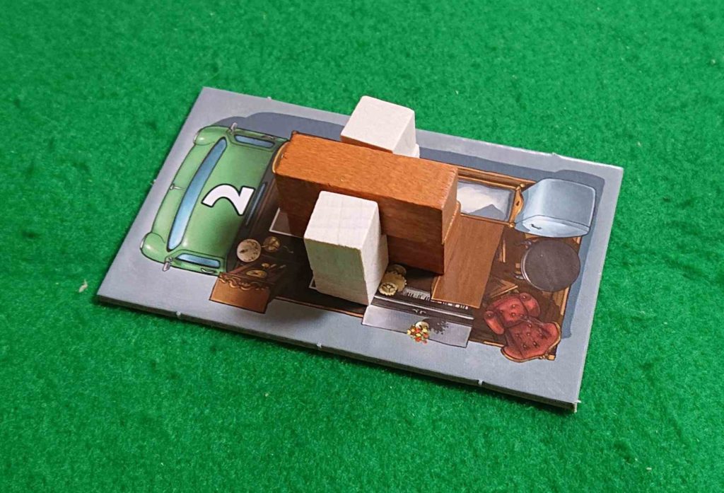 荷物を積み終えたら、積み残した荷物や乗せた荷物の空白分がマイナス点となります。持ち点が0点になったプレイヤーの負けです。