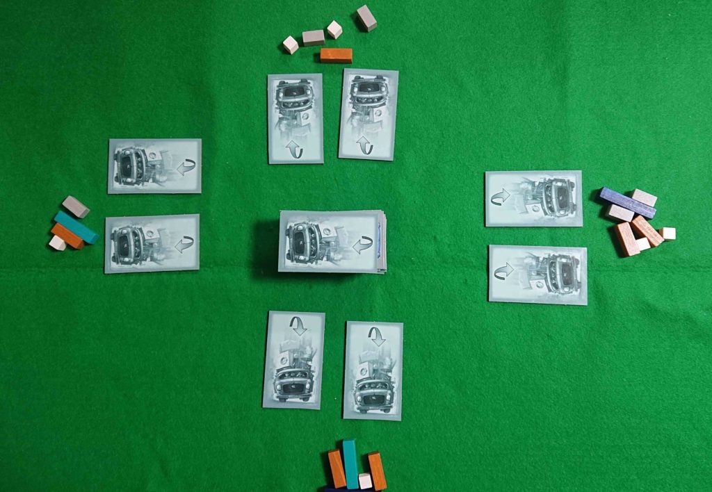 一斉にトラックカードをめくります。各プレイヤーは自分の前以外のトラックカードを1枚選び自分の前に置きます。