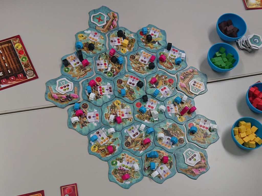 ゲーム時間は4人でインスト込みで60分だったので、実際のプレイは40分くらいで終わりますので、非常に軽いタイプのゲームです。2手3手先まで読んで船の移動を考えて効率良くスパイス(資源)を返還していく必要があります。