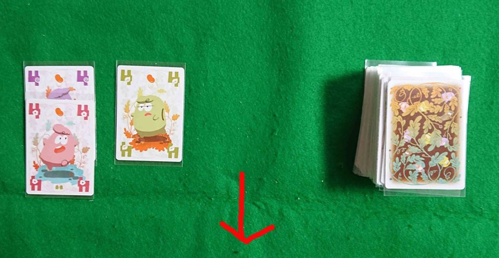 2.セットとして作り、自分の前に裏に置いた豆カードに描かれている豆の数をすべて合計します。(手札の豆カードのマメの数は加えません!)