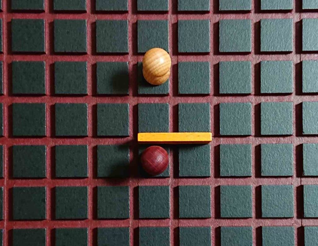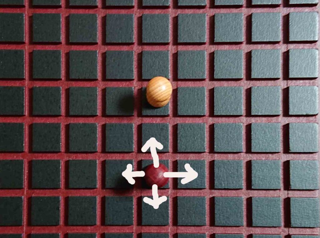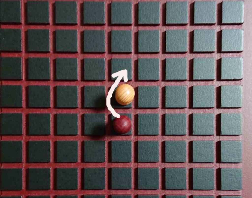 交互に、コマを縦・横に1個ずつ動かしていきます。ただし、コマを動かす代わりにブロック用板を置くことも出きます。