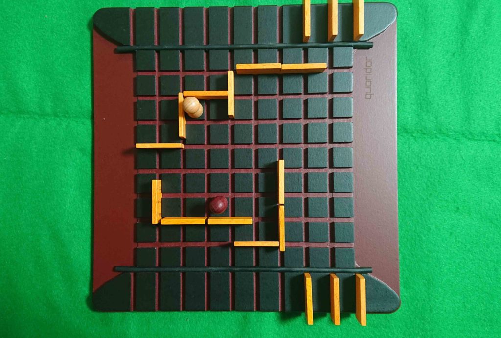 木製のコマで手触りも良く高級感がある2人専用ゲーム「コリドール」です。完全なアブストラクトゲームですが、ルールも優しく子どもから大人まで楽しめる名作ボードゲームです。