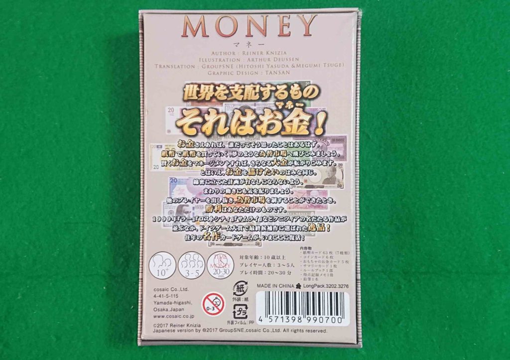 1種類の貨幣をある金額以上集めたり、同じ種類の同じ額の紙幣を集めたりして得点を稼いでいく、セットコレクション系のカードゲームです。1番得点の高いプレイヤーの勝利です。