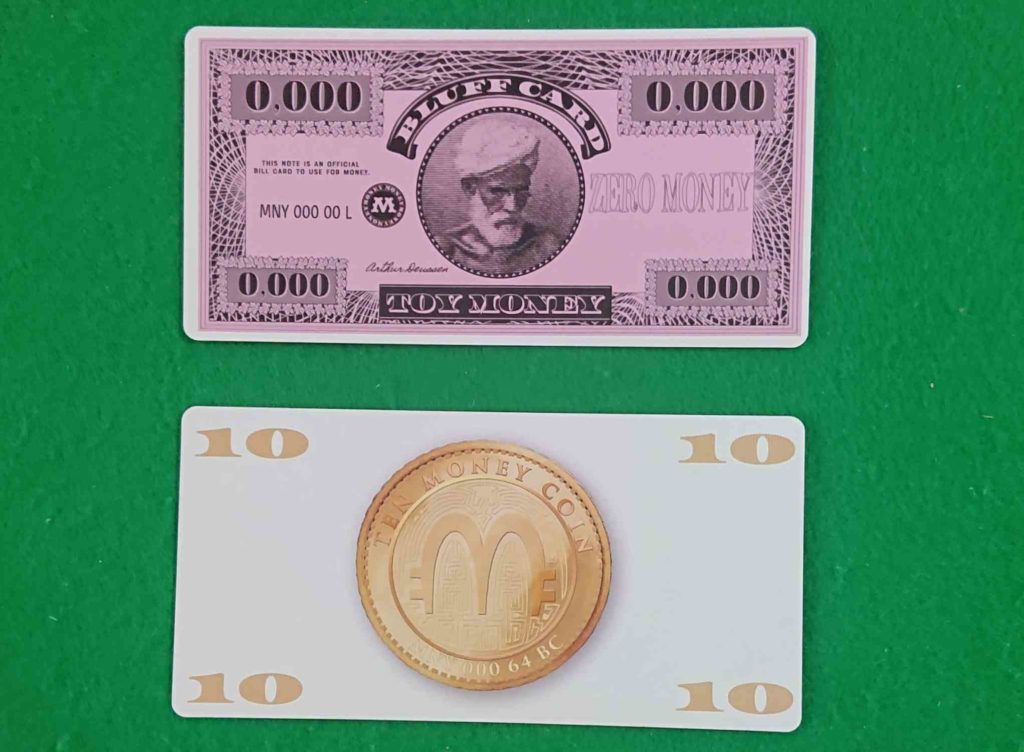 上段は、おもちゃのお金カードです。競りの時にダミーカードとして使います。