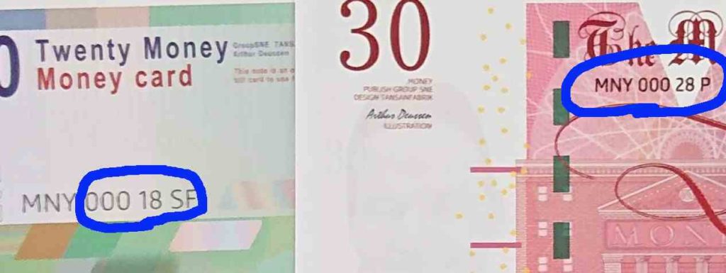 金額合計が同じ時は、貨幣カードに書かれている通し番号をみて1番小さい番号のプレイヤーが先に手番を行います。