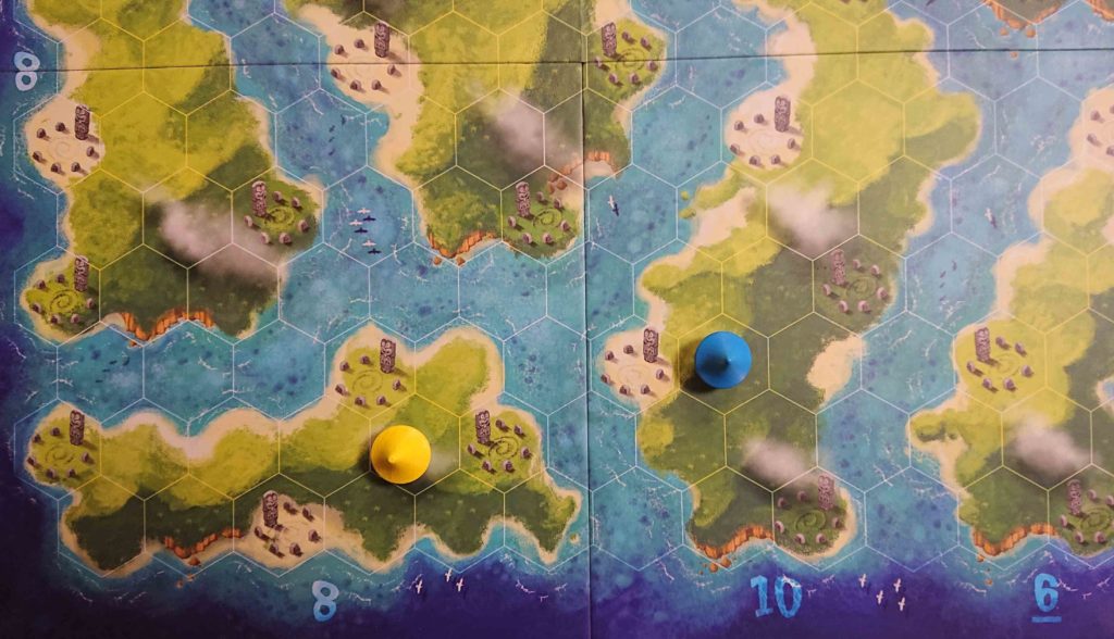 よって、前半の探索フェーズで、どこに村コマを置くのかと言うのが非常に重要になってきます。後半戦でどのように広がっていくのかを、他のプレイヤーの村コマを見ながら置いていかなければなりません。