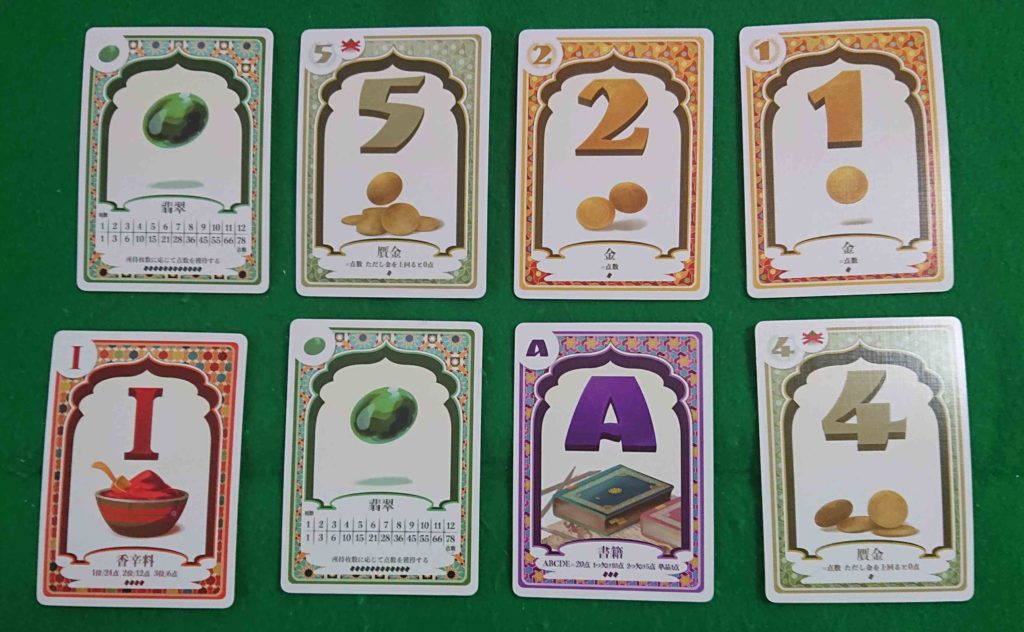 また、新たにカードを8枚場に出します。これを繰り返しカードを集め、それぞれのカードごとの得点を合計し、最も得点の高いプレイヤーの勝利です。
