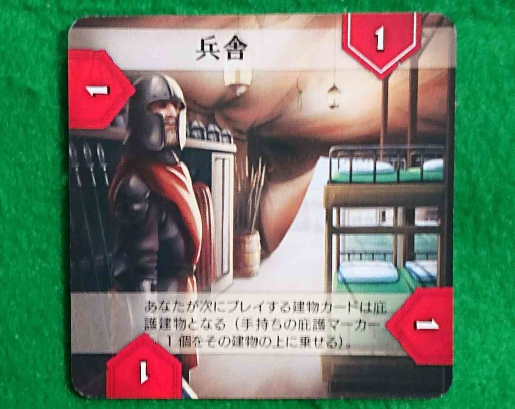 兵舎 次にプレイする建物カードの上に庇護化マーカーを置く