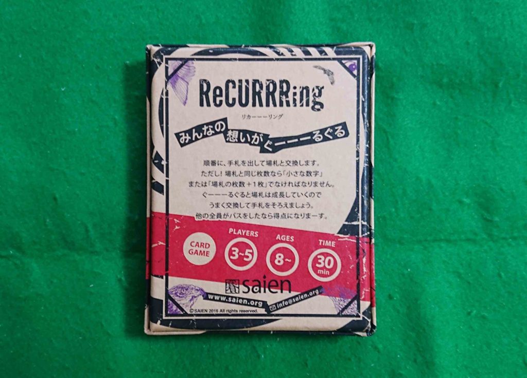 みんなの思いがぐーーーるぐる!ちょった変わったトリックテイキング?!カードゲームです。単純なルールながらなかなか奥が深いカードゲームとなっています。