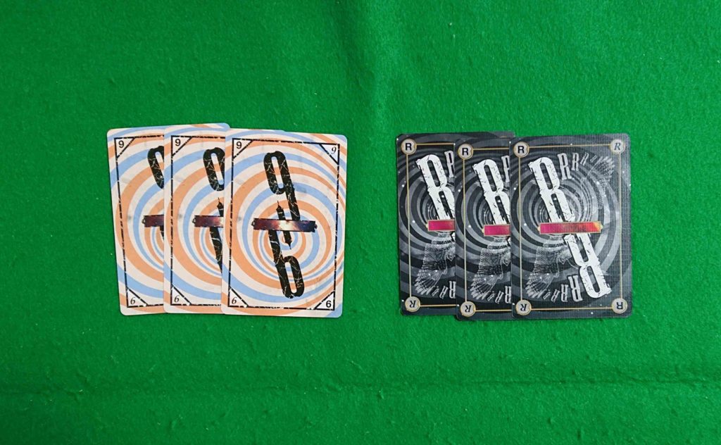 3人プレイ時 8と9のカード17枚とRのカード2枚を除く 39枚
