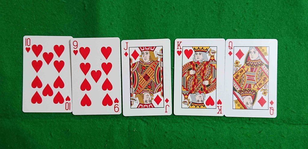 ストレート(5点)・・・連続する5枚の数字(1と9は連続と見なさない)