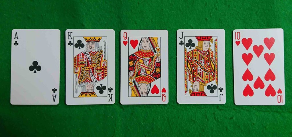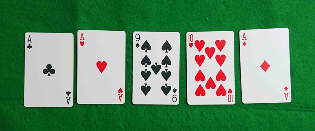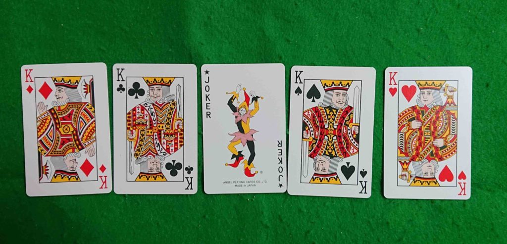 ファイブカード(10点)・・・ジョーカー1枚と同じ数字4枚