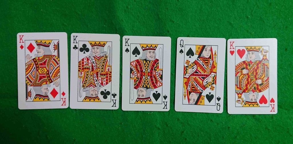 フルハウス(5点)・・・同じ数字が3枚と2枚