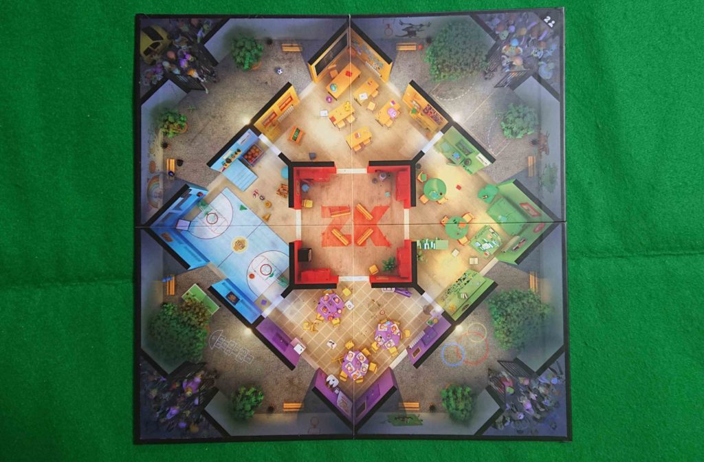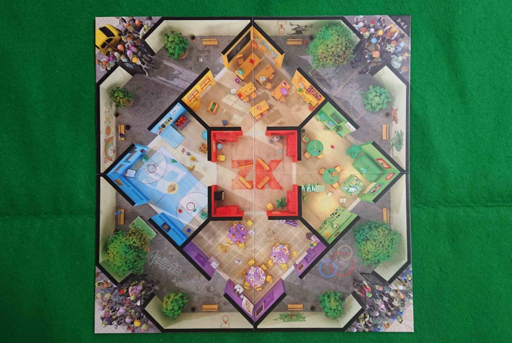 ゲームボードです。部屋が5つと校庭が4つの9か所に分かれています。