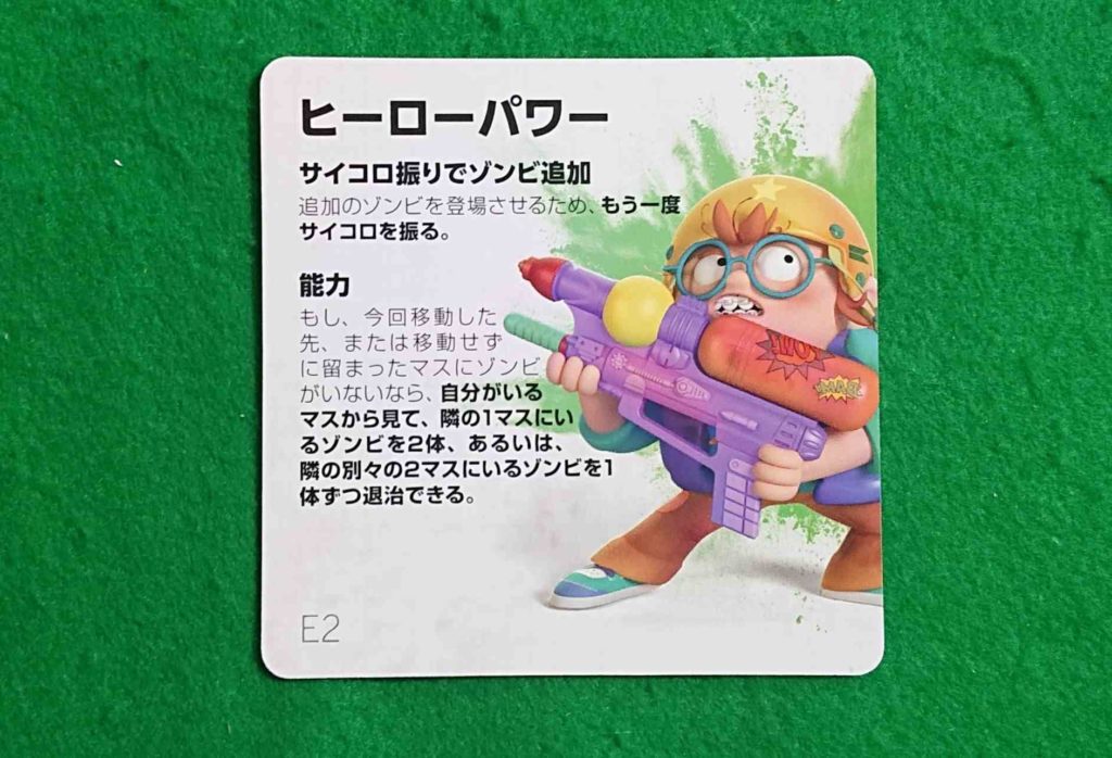 プレイヤーは自分のキャラクターコマを通路で繋がっている部屋または校庭に1つ移動出来ます。移動しなくても構いません。その後、その部屋にゾンビがいる場合は2体まで撃退できます。
