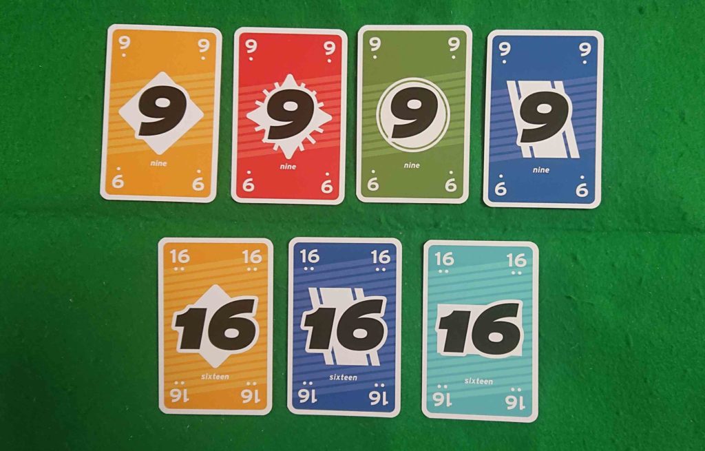 数字のカードが5色あり、各色1から17までの17枚あります。