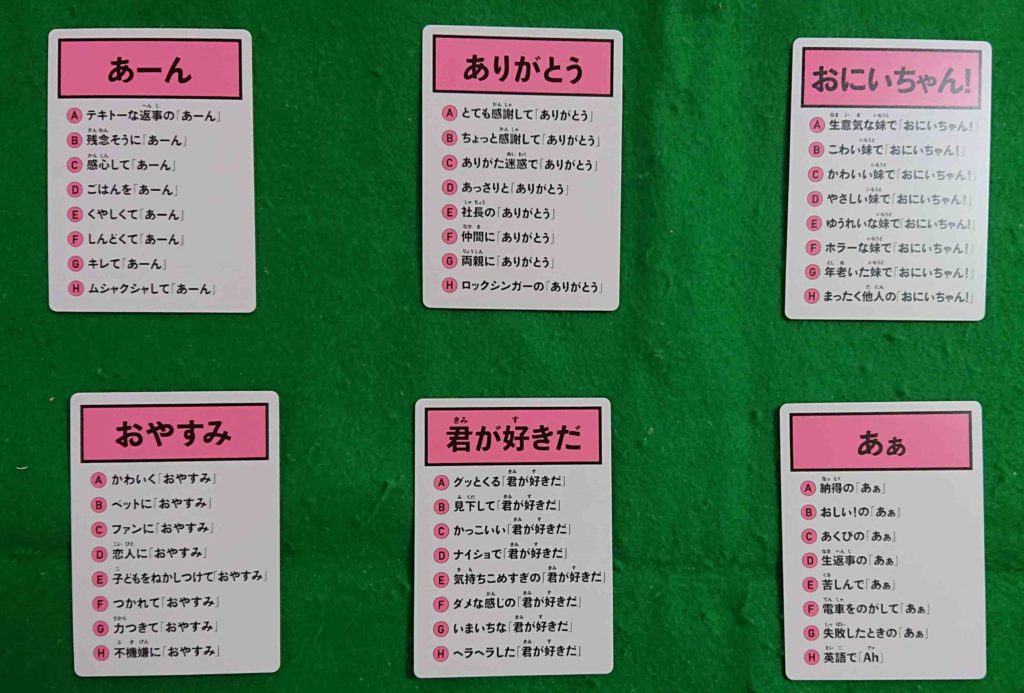なかなか難しいカードも入っています。「君が好きだ」とか区別が難しいんじゃないかな?
