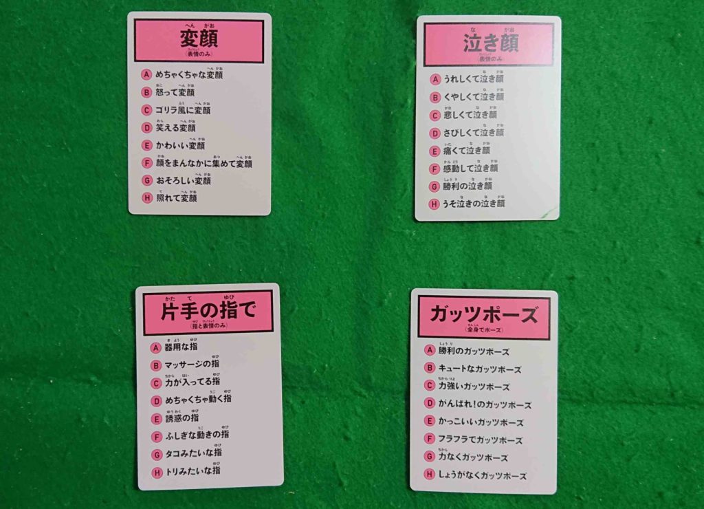 各プレイヤーが言った後に他のプレイヤーはA~Hのどの表現なのかを推測して行きます。全員のプレイヤーが表現を終わったら答え合わせをします。