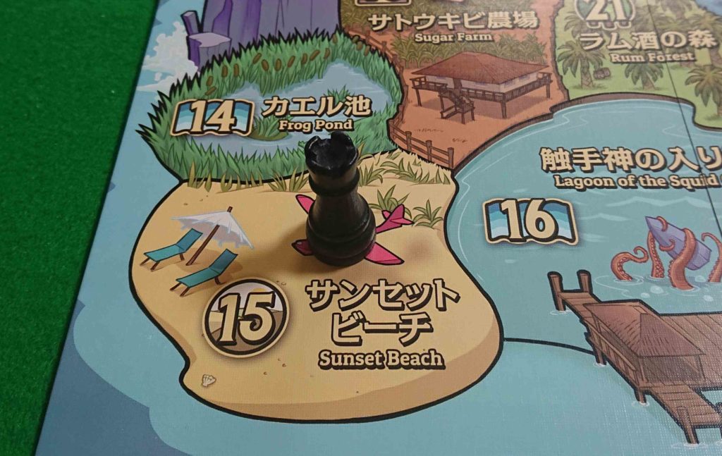 Drラッキーのコマを15番「サンセットビーチ」に置きます。