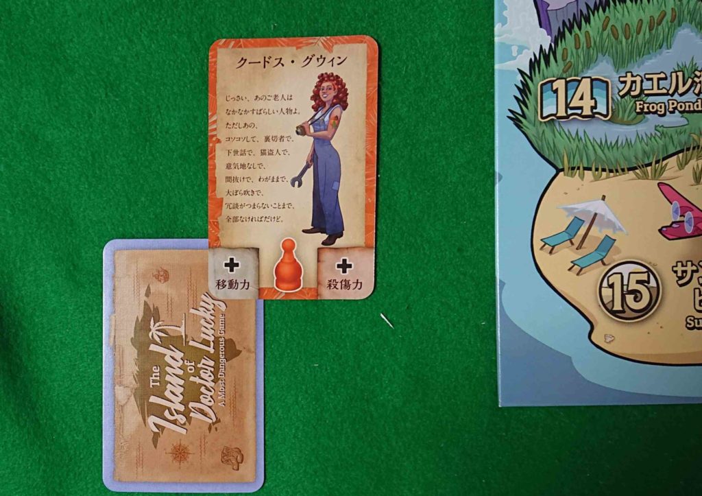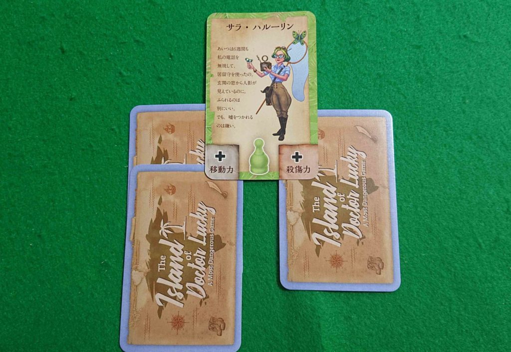災害カードをプレイしたプレイヤーはそのカードを裏にしてキャラクターカードの左下に差し込みます。これで今後の移動力が1増えます。