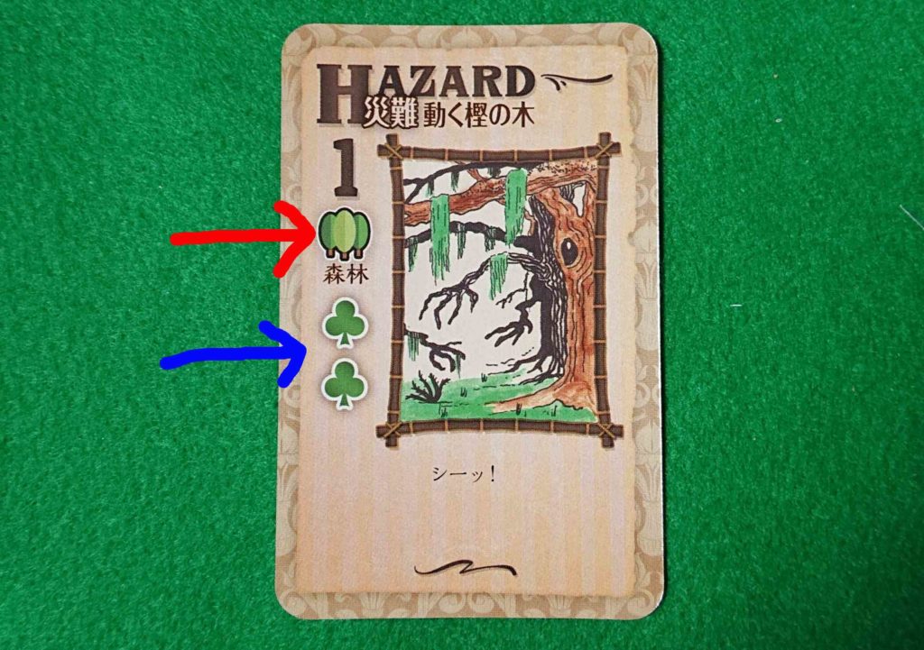 下の写真は、森のエリアにいるときにプレイできる災難カードです。