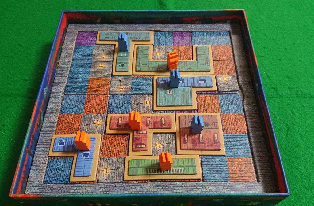 自分が置こうとしていた敷石タイルの場所に相手の敷石タイルが置かれてしまったり、置きたい建物タイルを取られてしまったりと、じっくりと敷石配置・建物配置を考えるところではなく、その場で臨機応変に対応していくのが大事なゲームですね。