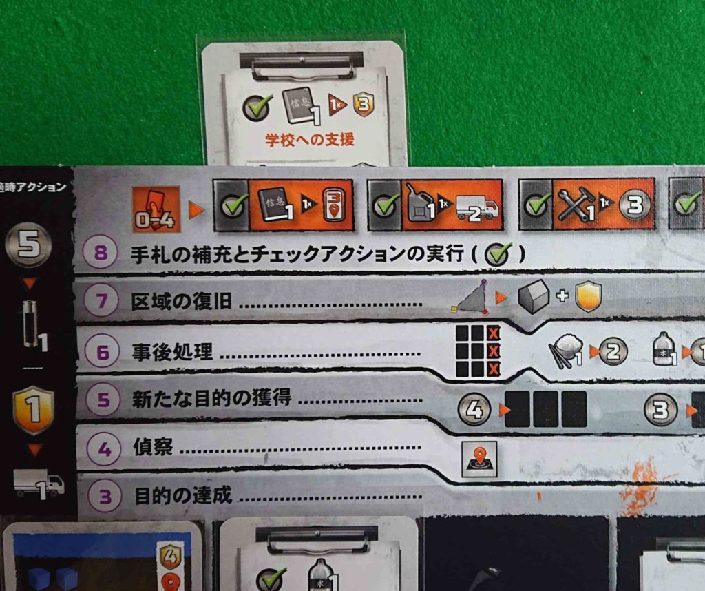 「復旧したエリアの得点」と「手札カードの勝利点」と「目的達成による勝利点」を加えて(それ以外の得点もあります)最も得点を取ったプレイヤーの勝利です。