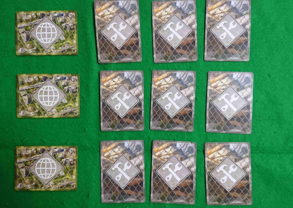 プレイヤーは、2ラウンドで各ラウンド3回の計6回の戦闘を行います。戦闘に勝つのは、最も部隊の攻撃力合計が大きいプレイヤーです。戦闘に勝つとたてものカード(スクラップポイント(勝利点))を獲得出来ます。