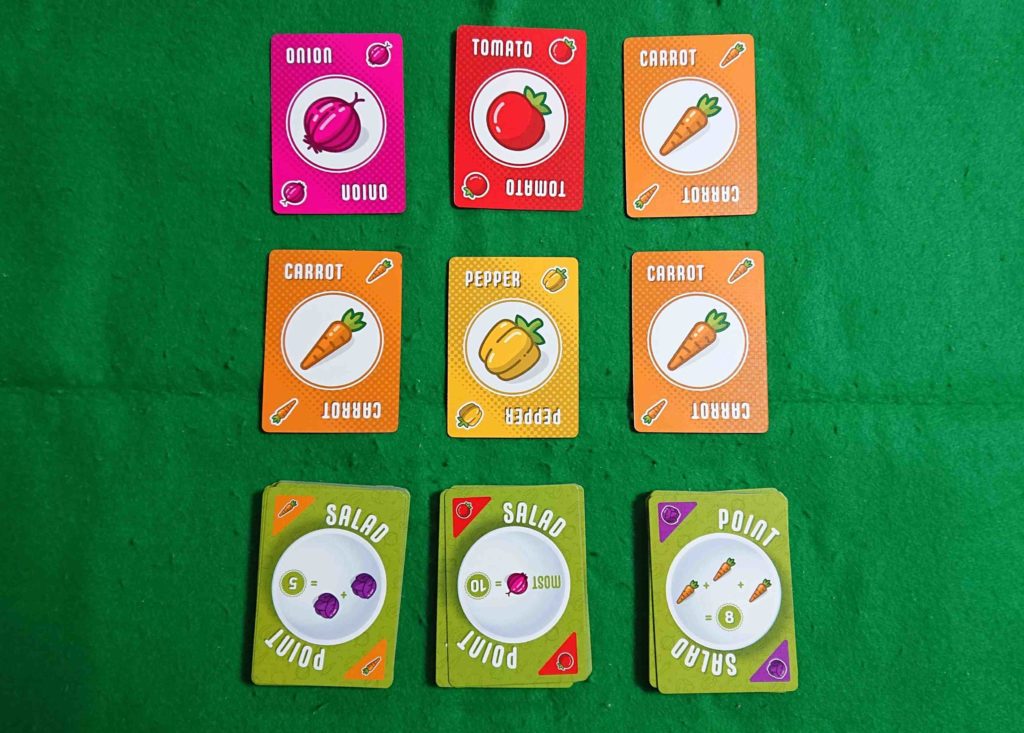 サラダをたくさん作って、ポイントを稼ぎましょう!108枚のカードのすべてが異なっっているという、簡単ルールながら独特の感じを持ったカードゲームになっています。