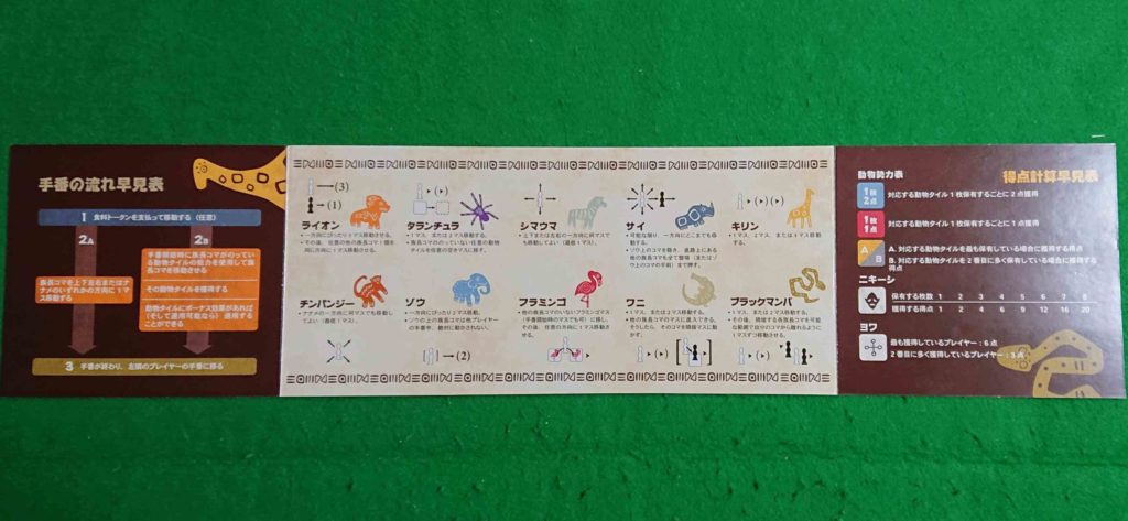ついたての裏面は手番中のルール・動物タイルのアクション・得点方法が書かれています。