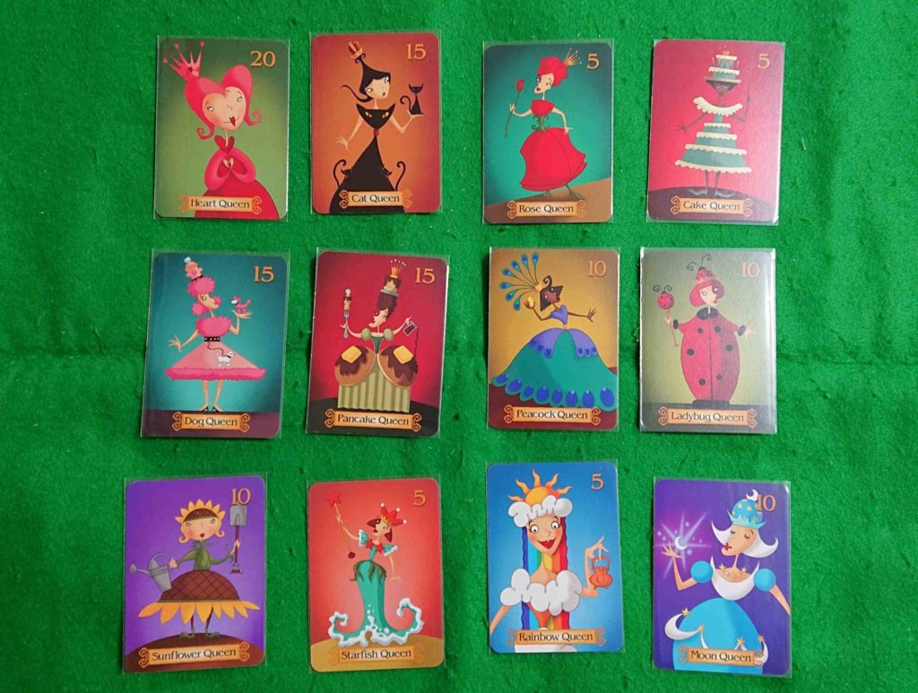 ゲームの目的は、手札からカードを1枚出して、そのカードの効果を使って、眠っている女王(裏になっている女王カード)を獲得し、女王カードの規定の点数以上を獲得することです。