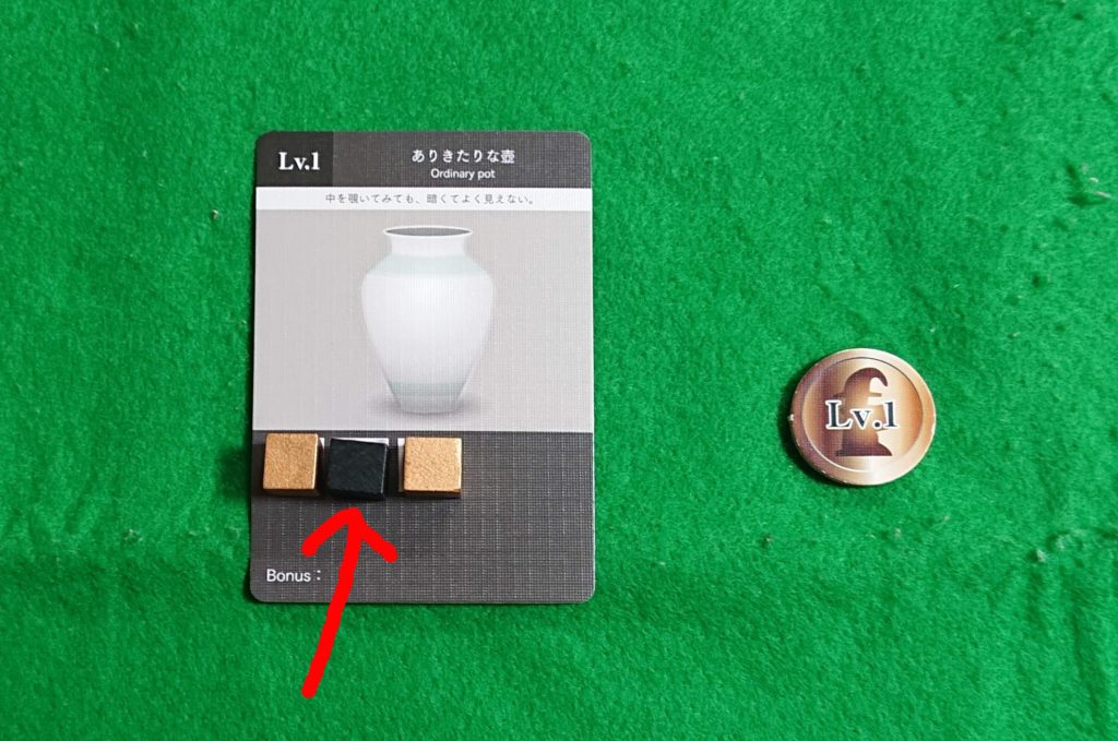 また、宝物カードの最後のマナを埋めたプレイヤーはその宝物カードのレベルに応じたボーナスチップを裏のまま獲得します。