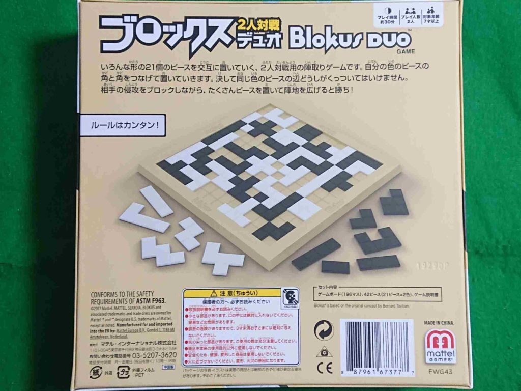 大人気ボードゲーム「ブロックス」の兄弟にあたる「ブロックスデュオ」です。ブロックスが2人専用の対戦ゲームになりました。