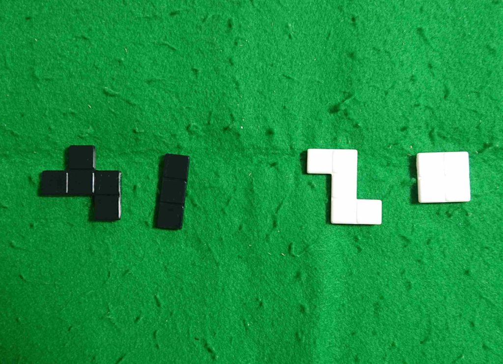 黒と白のピースです。同じ形のピースが各21個ずつあります。
