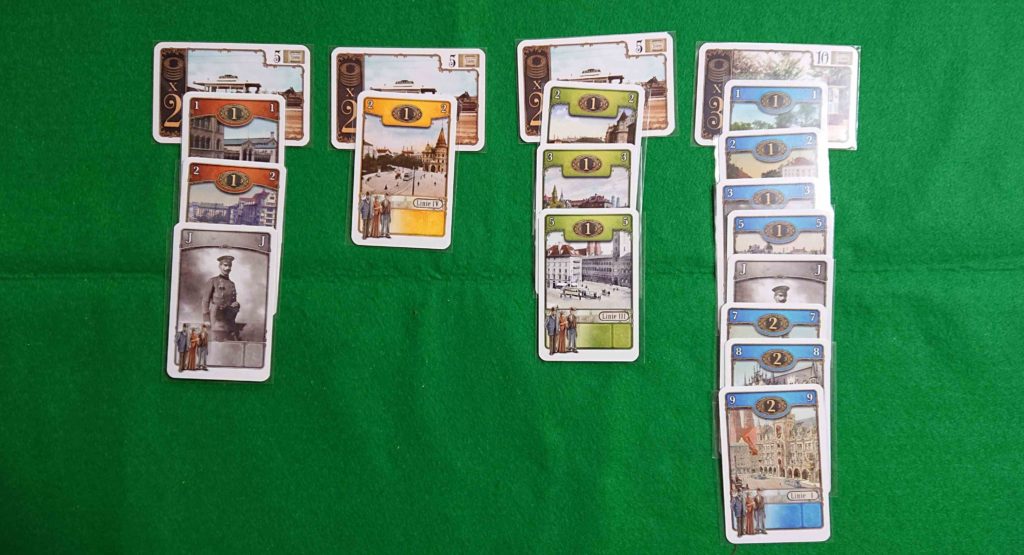 カードの裏がお金になっていて、カードを路線として使うか・乗客として使うか・お金として使うかを選択しながら、カードを配置してゲームを進めていきます。
