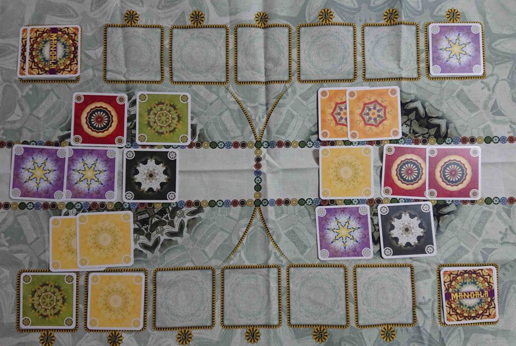 プレイヤーは手札を6枚(最大8枚)持ち、2つの曼陀羅(マンダラ)にカードを置いていきます。