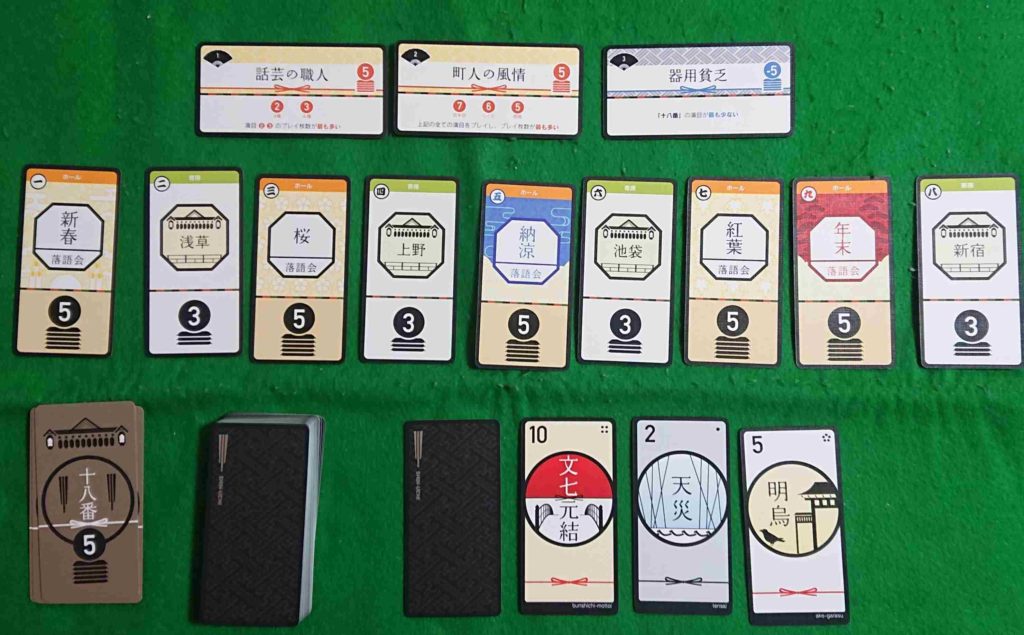 落語好きならよく知っている演目が沢山あります。ゲームと落語のトリをつとめるという感じが上手くマッチしているカードゲームですね。