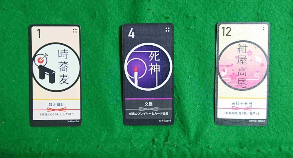 ただし、数字の2と3の演目カードは演目がすべて異なるため3枚目を出しても十八番(おはこ)カードを獲得出来ません。