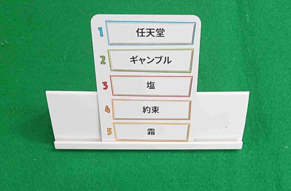 回答者は1番から5番までの好きな数字を宣言します。その番号が今回のお題になります。