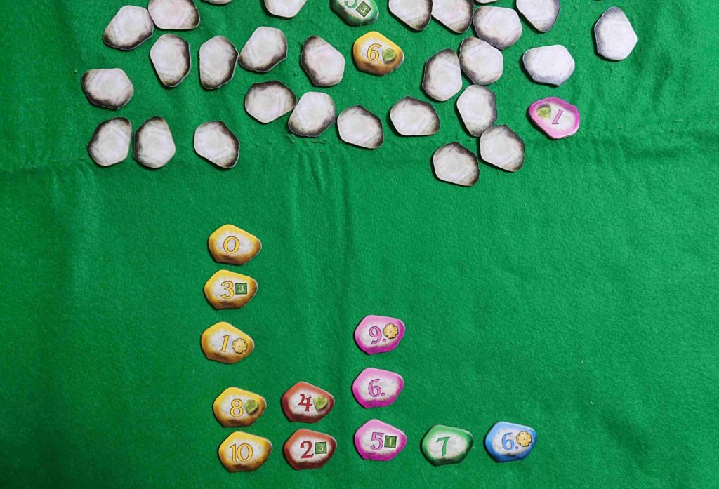 めくったタイルまたは表になったタイルを手元に配置していき得点を競っていきます。