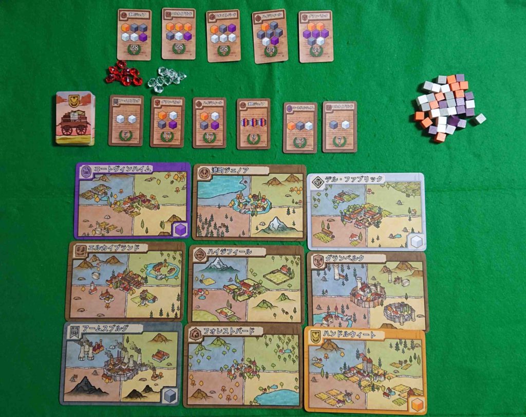 ランダムに都市を並べて馬車コマを移動するところが、ちょっと「横浜紳商伝」「イスタンブール」「センチュリーイースタンワンダーズ」とかに似ている感じがしました。