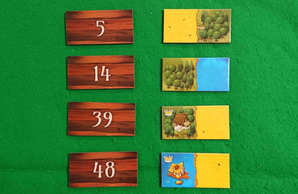 番号が大きい方がゲーム終了時に得点しやすいタイルになっています(つまり、出来るだけ数字の大きいタイルを取った方が良い)。