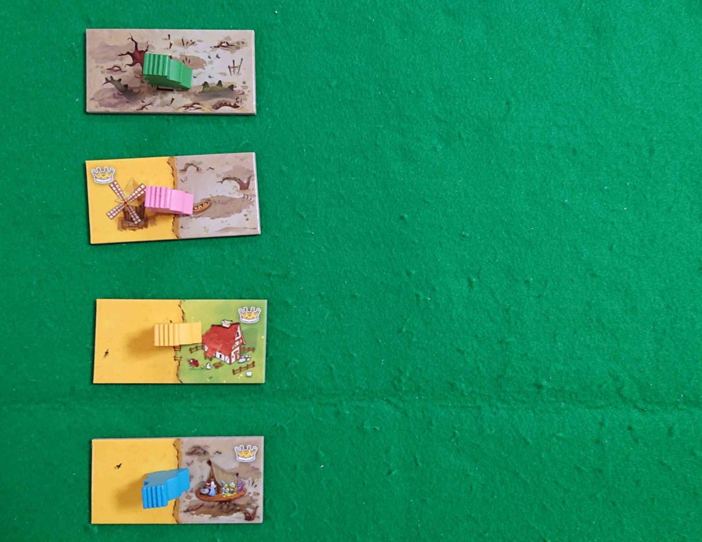次の手番を早くするのか?それとも欲しいタイルを取るのか?ちょっとしたジレンマを感じながら、ゲームは進んでいきます。