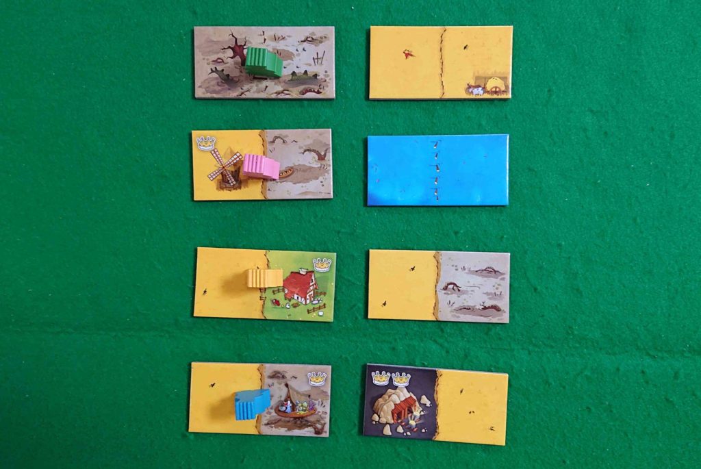 同じ地形のタイルを出来るだけ繋げていくほど得点が伸びます。最も得点の高いプレイヤーの勝利です。
