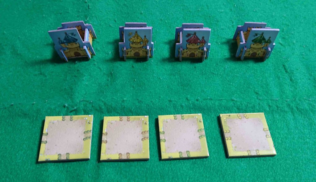 お城とお城に下に置く1×1タイルです。各プレイヤーごとに1個あります。